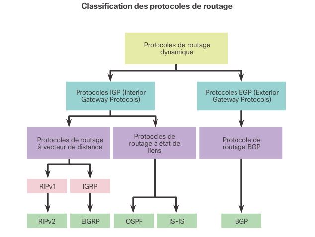 Ensuite, dans les protocoles de routage internes, on trouvera deux sous-catégories :
