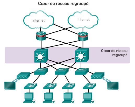 Y'a juste une couche qui n'est pas affichée en fait. Y'a bien deux niveaux. Les couches "coeur de réseaux" et "distribution" sont regroupées. La couche d'accès est en-dessous, là où y'a tous les switchs. Mais elle est tellement "logique" que Cisco a décidé de ne pas l'afficher.