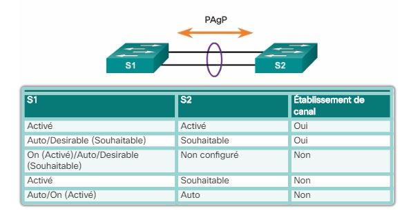 Pour permettre la création de tous ces petits EtherChannel dynamiques, 3 modes sont disponibles pour PAgP :