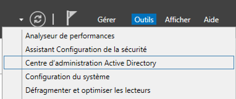 Retournons à notre gestionnaire de serveurs et cliquons sur « Outils » puis « Centre d’administration Active Directory » !