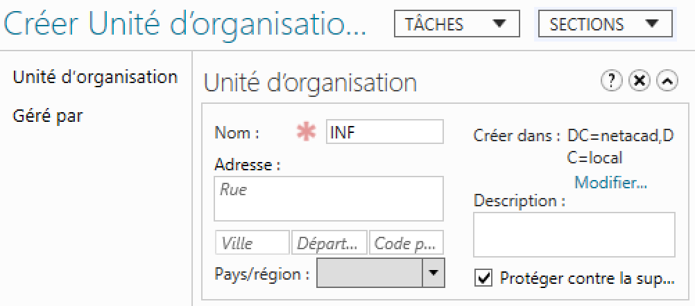 - Pour les besoins du TP, on va créer les OU suivantes :