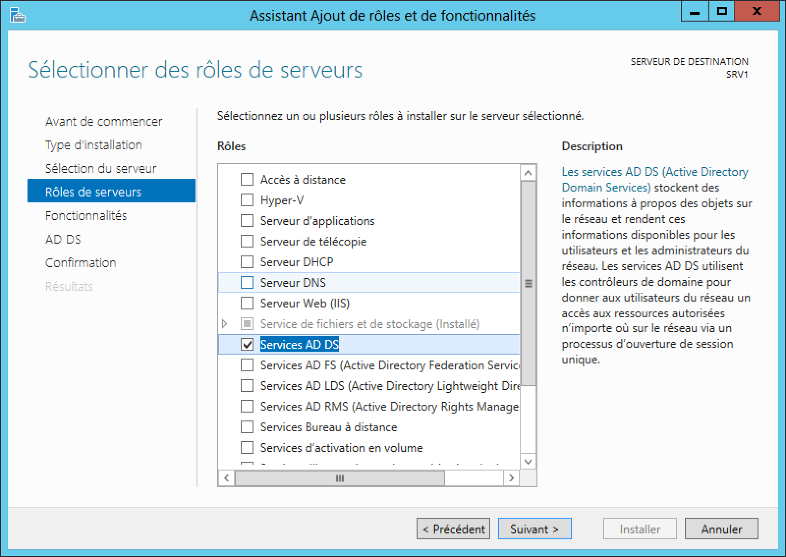 Cliquez sur suivant et cochez la case « Services AD DS ».
